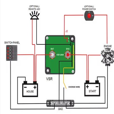 ◆Automatically combines two batteries when charging and isolates the two batteries when not charg