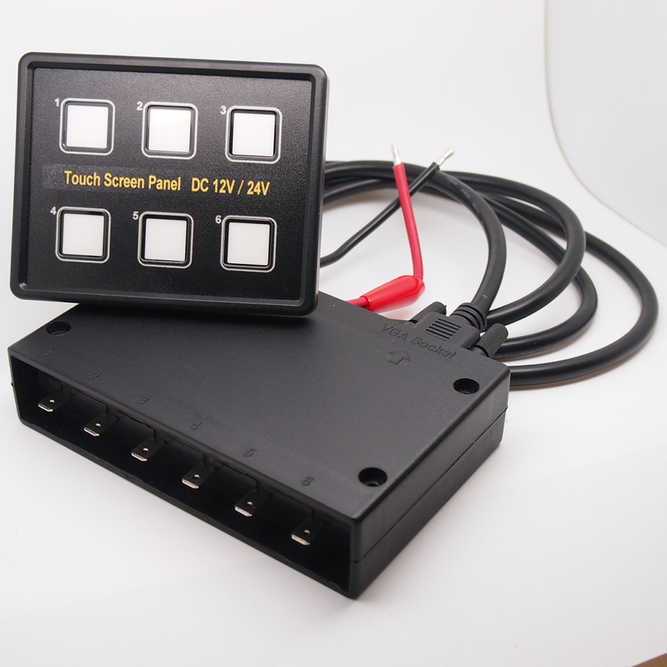 6 Gang Capacitive Touch Screen Panel x1Dimensions :80x100x10mm6 Gang Circuit Control Box x1Dimensions:85x135x30mm15-pin VGA Transmission Cable x1。3M Double Sided Adhesive x1