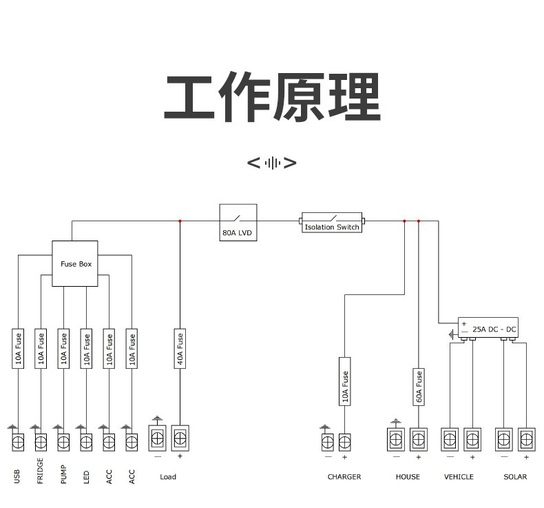 Dual battery charger, also known as "driving charger", is generally installed between the starting battery and the living battery. When the RV is driving, the engine is in operation, and the starting battery charges the living battery through it. When the car stops driving, it can also use solar panels to charge our living battery