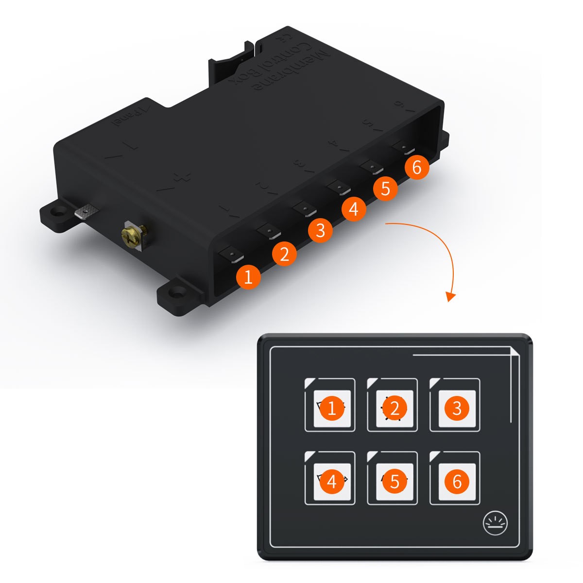 5mm thin film touch 6-speed panel switch button with adjustable reset switch DC10-30V With Bluetooth APP model,IP66,Touch switch,size 91*75mm,single 10A,Total 35A,1M wiring.(FS-HXSP5106)