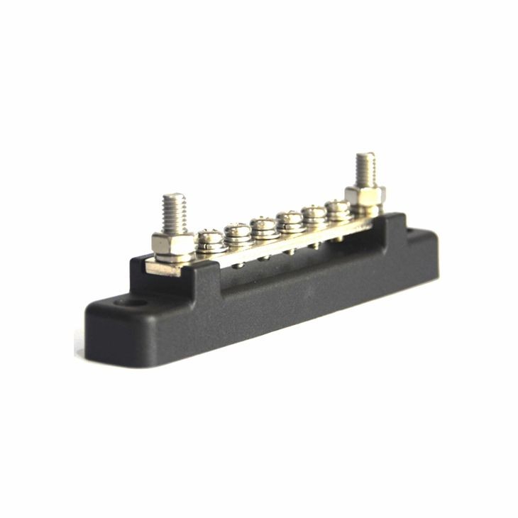 Ni-plated copper busbar plates offer low resistance, maximum conductivity and corrosion protection. Provides a neat finish to any installation for your car, boat, caravan and RV. Polycarbonate shields and stainless steel screws offer good heat and corrosion resistance. Bus bars are a way to connect incoming wires, increasing area, reducing energy consumption and lowering temperature rise. It has good versatility and strong practicality , reliable, time-saving and convenient.Studs and Screws :Stainless Steel Bus Bar : Ni-plated copperBase : Flame Retardant ABSTerminal screw: 6 * M4 (M4 stainless steel screw) Terminal studs: 2 * M6 (M6 stainless steel screws)
